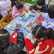 在我们的植物角里,贴上禁止跨越栅栏的标志,保护好小花小草。