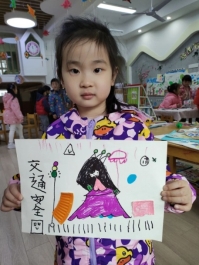 我们用了解到的交通安全知识和标志进行创作,并向大家提出倡议,“遵守交通规则,安全出行”!