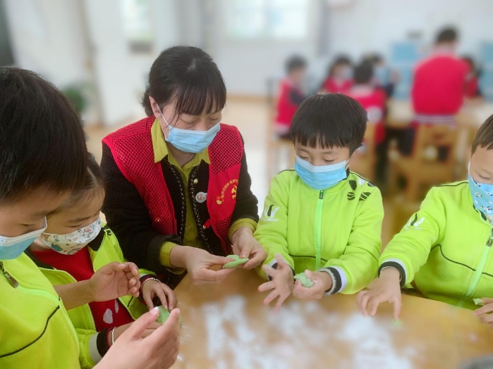 在党员教师是的带领下,孩子们通过故事、动画视频了解清明节的来历和习俗。在老师的讲解中,感受到了这个节日特别的意义。党员教师和大班的小朋友一起动起手来和面、捏团、裹馅,一步一步,大家做的可认真了。不仅品味了传统美食的特色,还体验了清明节的传统习俗。