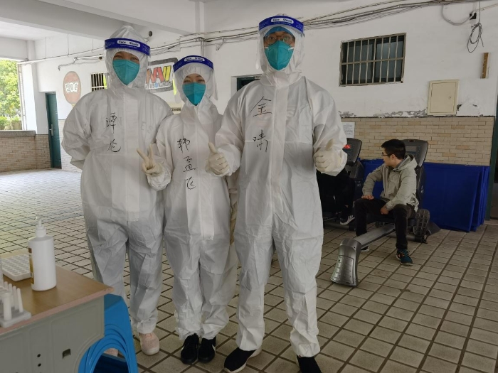 自疫情常态化管理以来,学校全体师生的日常核酸检测工作,便是在学校党总支领导下开展的志愿者服务。在学校教学工作紧张的情况下,党员同志以“先锋作表率”为原则,积极带头,承担“大白”和“小蓝”的志愿者工作。在学校整体安排下,校医方卓君老师开展了核酸检测要求的精细化的培训。党员同志们积极学习,放弃自己的休息时间,承担防疫工作,成为学校靓丽的风景线。