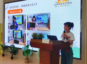 在第三个环节中,桃源幼儿园的钟高阳老师介绍了童话桃源APP在幼儿游戏中的日常操作,同时强调了APP所带来的成效:不仅提高了园所管理效率,促进家园沟通,更让幼儿活动痕迹可视化,助推了幼儿的学习与发展及。