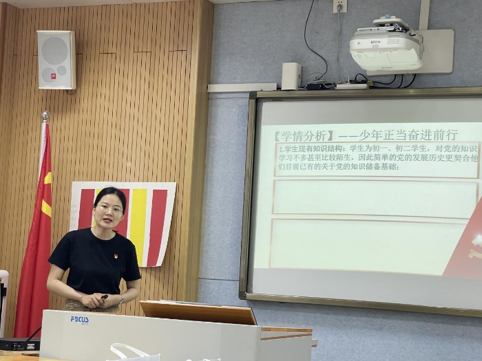 红色六月,激情澎湃。6月15日下午,bet188体育官网区第十一届运河赛课节 “党的知识进课堂” 第2小组学校现场说课比赛在文晖中学举行。来自华师大附属杭州学校初中部、文晖中学、长阳中学、文澜中学、文晖实验学校的老师和评委们齐聚学校录播教室,共同探讨红色课堂,学习重温党的知识,感受伟大精神。本次赛课主题有“永远跟党走”、“光辉的历程”、“身边的共产党员”,参与说课的老师们选取不同主题,从各自学科出发,进行了精心的设计。