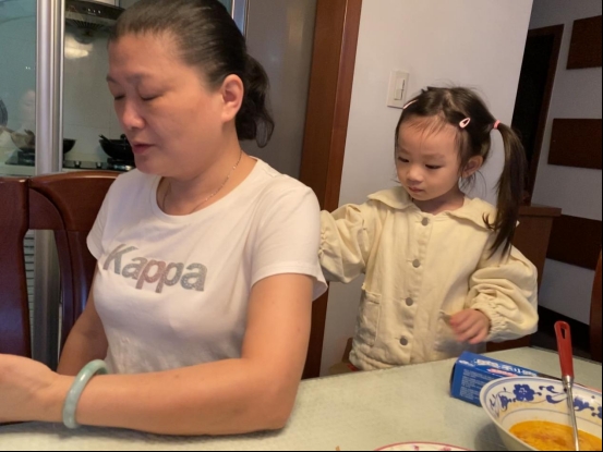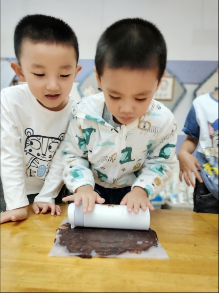 很快孩子们就熟悉了加工重阳糕的材料和工序,立马动手制作了起来,在奶奶的帮助下,孩子们完成了制作,最后送去厨房蒸至糕熟。孩子们在亲自动手操作中获得了更多快乐的童年体验,也使中华民族的传统习俗变得更有意义。