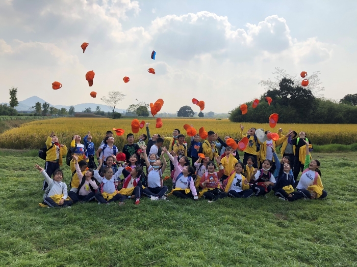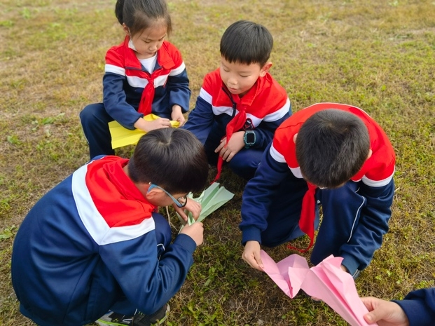 此次研学活动以“探索风的秘密”为主题,随着孩子们的欢笑声,浓浓秋意映入眼帘。他们随着风儿去湖边观察水面上的波纹,去田间看被风吹动的麦浪,去芦苇丛里聆听风儿诉说五千多年良渚古城的历史。瞧,他们用张张彩纸折成一架架纸飞机,在风儿的帮助下飞向天空盘旋、滑翔。孩子们随着纸飞机穿越田野,跑过草地,去角角落落追寻风的足迹。