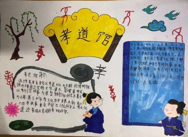 大快朵颐后,大家进入孝文化博物馆,古朴的气息扑面而来,我们沿着长廊一路观览。原来在周朝时期便有了“孝”的概念,意思是“要敬仰祖辈,尊重父母,孝敬长辈。”后来,在历朝历代的历史大潮中,也涌现出“二十四孝”等流芳百世的“孝”故事。