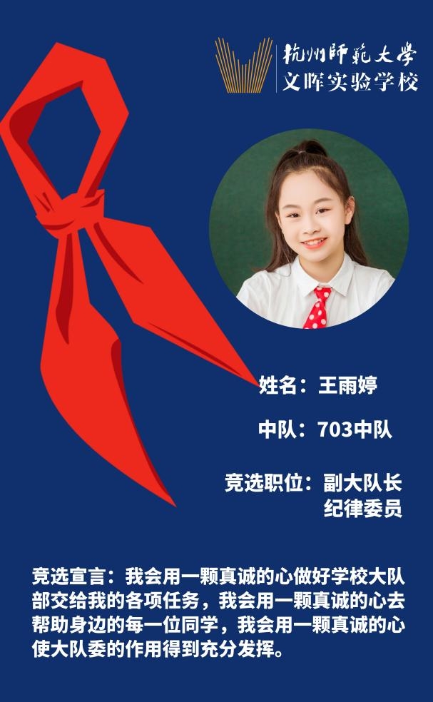 少先队是少年儿童自己的组织,队员是少先队组织的主人,大队委是少先队员的带头人,是队集体的核心力量。为培养少先队员的民主意识,建设好骨干队伍,发扬少先队员的主人翁精神,杭州市文晖实验学校少先队大队委员会于本学期进行了少先队大队委员换届竞选活动。