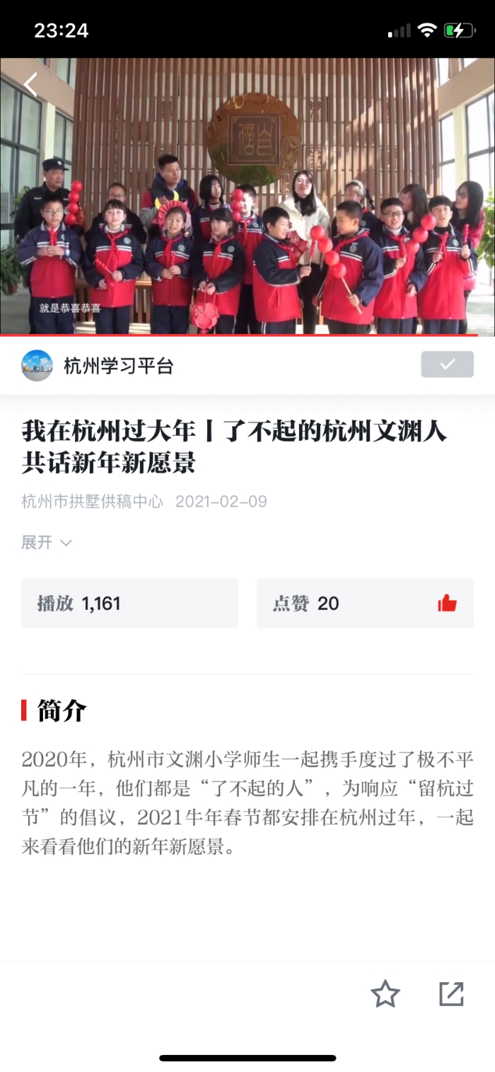 学习强国推出了我校的留杭倡议视频“我在杭州过大年|了不起的杭州文渊人共话新年新愿景”。