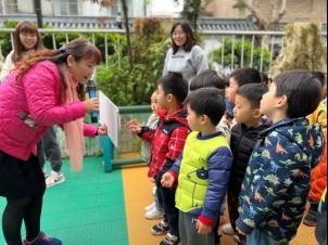 在入园、离园的时候,如果有陌生人要给我们好玩的玩具,我们要拒绝她,不能拿陌生人给的玩具。