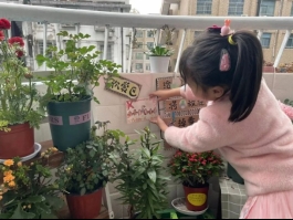 在我们的植物角里,贴上禁止跨越栅栏的标志,保护好小花小草。