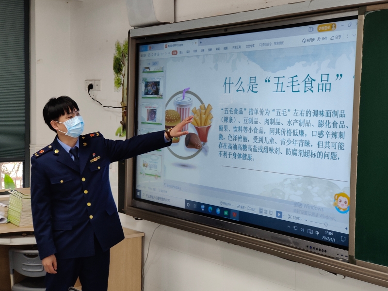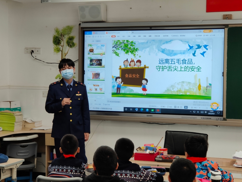同时市场监管所的叔叔着重提醒孩子做到不买无证摊贩处的食品,不买无商标或无生产日期、无生产单位、无保质期等标签不完整的食品;不到无证摊点、快餐店、小店购买食品或用餐。及时处理家中发霉变质、污秽不洁、超过保质期的食品。
