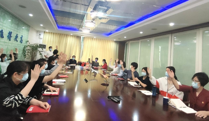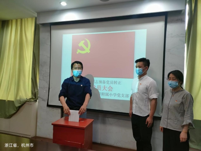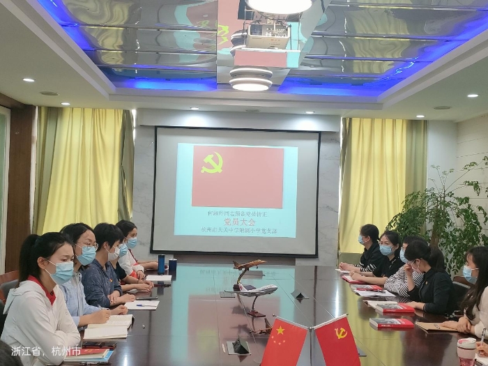 2022年5月7日下午1点,杭州市大关中学附属小学党支部在会议室进行了预备党员转正会议。