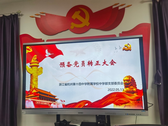 为进一步加强党员队伍建设,增强党员队伍生机与活力,2022年05月13日,杭州第十四中学附属学校中学部党支部召开预备党员转正大会,讨论预备党员陈丽思同志的转正问题。