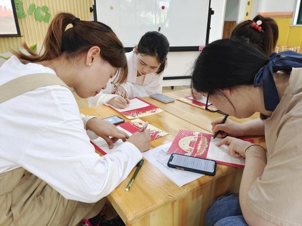 习近平总书记指出,书法是中华文化瑰宝,包含着很多精气神的东西,一定要传承和发扬好。本次书法活动为教师们搭建了一个展示自我,相互学习的平台,更是深入地学习了习近平总书记重要讲话精神,关于教育的重要论述。致敬光辉百年,讴歌伟大历程,进一步坚定了忠诚于党的教育事业的信念。半山学前教育集团的教师团队还将继续努力练好中国书法,传承汉字文化,写漂亮字,做优秀人。