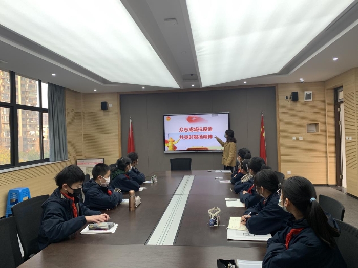 2021年12月15日下午,杭州师范大学文晖实验学校以“众志成城抗疫情,共克时艰扬精神”为主题组织开展团课第6讲。本次团课由姜帆老师主讲。