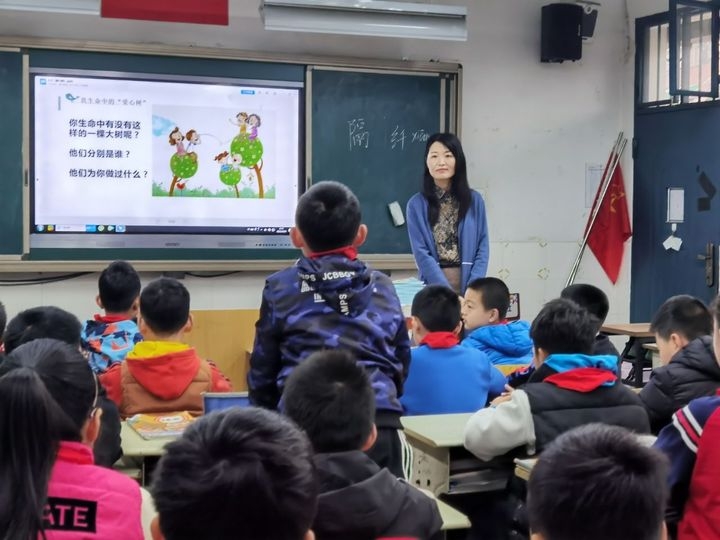 一年级的孩子们最爱看绘本故事,老师们以《爱心树》绘本故事导入,孩子们看得目不转睛,听得津津有味。故事中的苹果树为了小男孩奉献了自己一生,当老师问到:“在你的生命中,有没有这样一棵大树,是谁?”孩子们纷纷举起了自己的小手,是啊,父母对孩子的爱是无私的,而这种爱如涓涓溪流流入孩子们的心田,高举的小手自信地展示着父母对自己浓浓的爱。