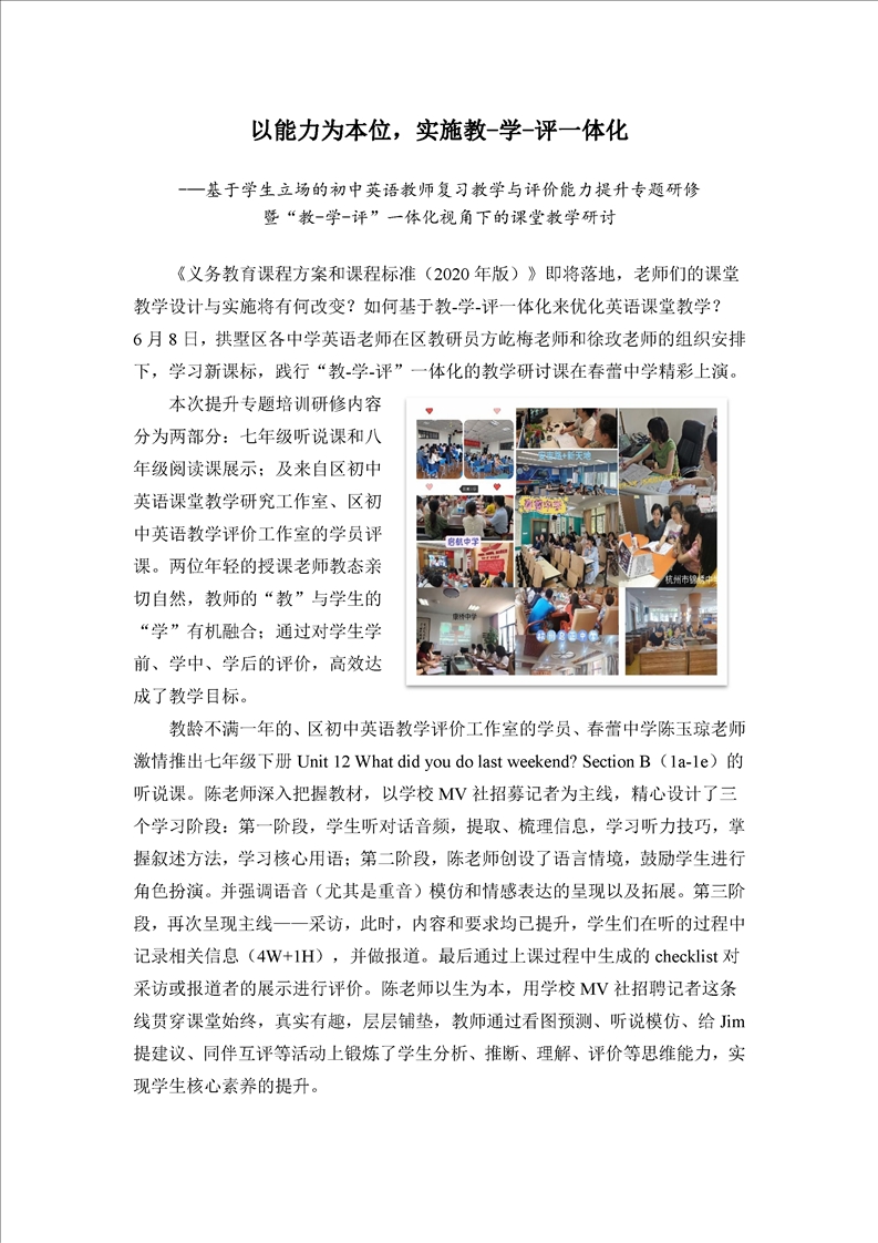 ——基于学生立场的初中英语教师复习教学与评价能力提升专题研修 暨“教-学-评”一体化视角下的课堂教学研讨