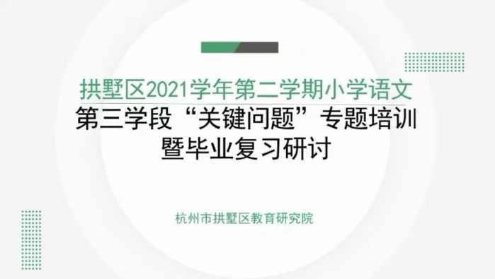 近日,bet188体育官网区小学语文第三学段“关键问题解决”专题培训暨毕业复习研讨活动在线上顺利进行。在区小语教研员、特级教师汪燕宏老师的精心设计和组织引领之下,区全体六年级语文教师相聚云端,围绕“毕业复习”这一主题,展开深度研讨。