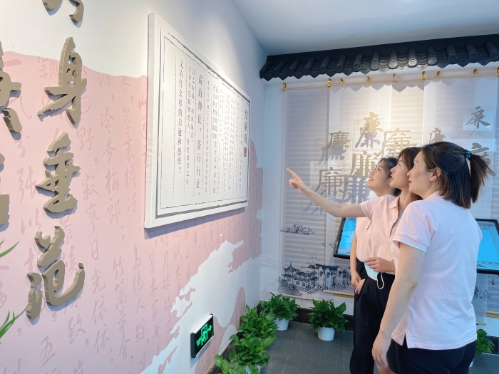 行走在“廉语隧道”中,低头俯瞰是运河沿线的风景,抬头仰望是廉政诗语,“浩然天地间,为我独正也”、“物必先腐,而后虫生”……弘扬清廉文化,汲取廉政智慧,在交错的文字里融汇了廉政诗词,全体党员通过廉洁古诗词了解背后的清廉故事,有趣有料有清风。