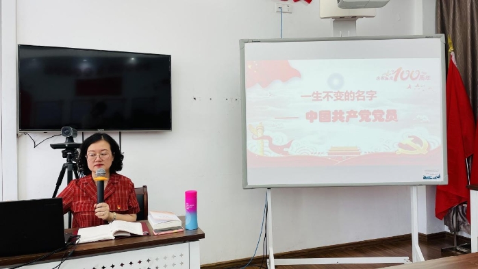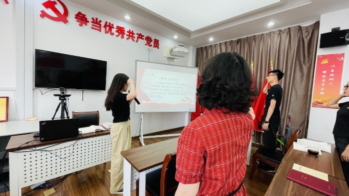 之江校区党支部严莹书记以“一生不变的名字——中国共产党党员”为主题,对党员进行了“忆初心”党课教育。