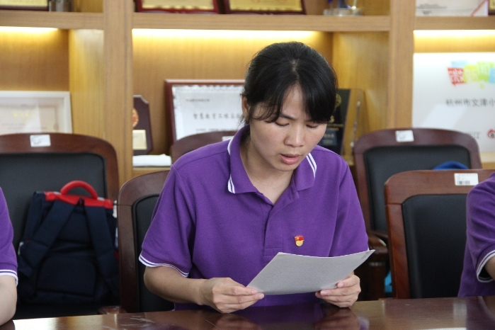 为全面推进学校党支部建设,激励全体党员继承和发扬党的革命传统和优良作风,增强党支部的凝聚力、战斗力和号召力。7月5日,文津小学党支部组织全体党员开展以“重温誓词忆初心,党员行动润童心”为主题的党员固定日活动,全体党员积极参加。