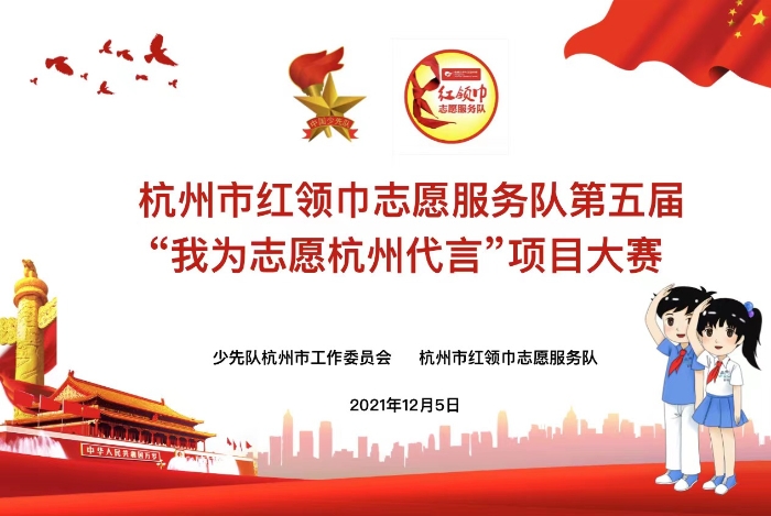 为迎接“国际志愿者日”,深入开展小小志愿者活动,倡议红领巾志愿者在社区、学校等生活周边环境,在图书馆、博物馆等公共环境中开展志愿服务,引导红领巾志愿者树立主人翁责任和意识,杭州市红领巾志愿服务队开展了2021年第五届“我为志愿杭州代言”项目大赛。