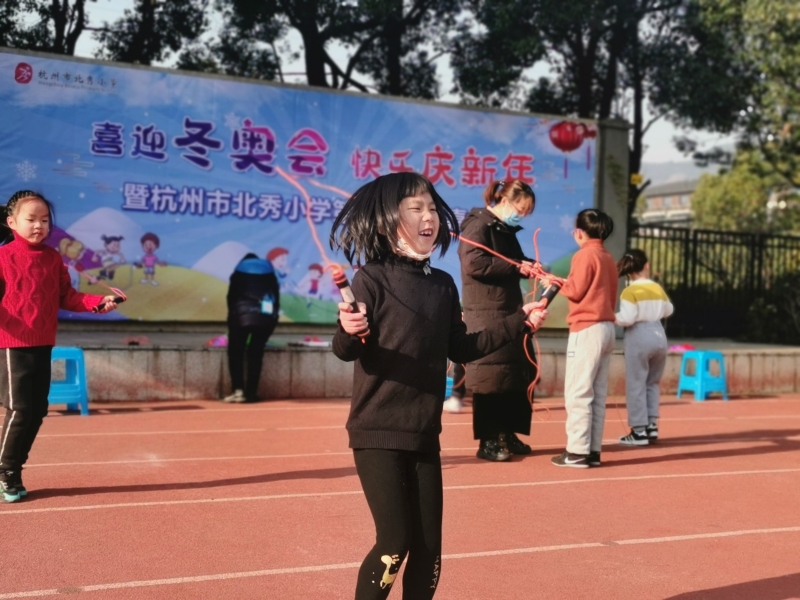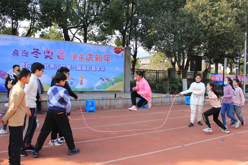 2021年12月31日,杭州市北秀小学开展了“喜迎冬奥,快乐庆新年”暨第六届绳彩嘉年华活动,在阳历新年即将到来之际,孩子们用自己矫健的身姿为冬日暖阳添加一笔动感,本次活动以年级轮换,班级分散的形式进行,虽然不如往届热闹,但同学们热情不减,加油声、欢呼声此起彼伏。