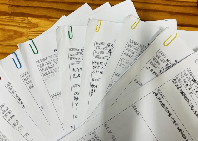 在本学期,我校举行了“做新时代小主人”——中国少年先锋队杭州市新华实验小学的第三届校少代会,队员代表们在班级广泛征集提案的基础上,将中队队员的想法与心声一一记录下来。本次少代会共收到44份来自于少先队员的提案,在这其中,有不少提案提及到了关于校园建设的内容。学校大队部仔细阅读各项提案,并与相关部门一一对接,反馈少先队员们提出的问题与建议。