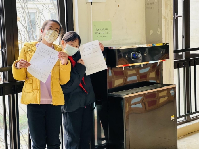 有了饮水机后,我们不用因去灌水而迟到了,大大节约了时间,留下了更多休息时间,同学们有的在讨论,有的再学习。每节下课,饮水机旁总会有几个在打水的同学,大家不推不挤,有时还会帮一帮二年级的小同学。久而久之,水也打好了,朋友也交上了!非常感谢学校批准了我们的方案!