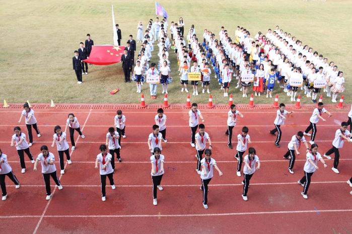 2021年10月9日上午8点整,杭州师范大学文晖实验学校第二届田径运动会开幕式在学校操场隆重举行。傅一华校长、章东方副校长、林淑萍副校长、林肖骏副校长、梁缨主任、马晓萍主任、吴佳伟副主任、杜正副主任以及全体教师、学生和部分家长出席开幕式。开幕式由姜帆老师主持。