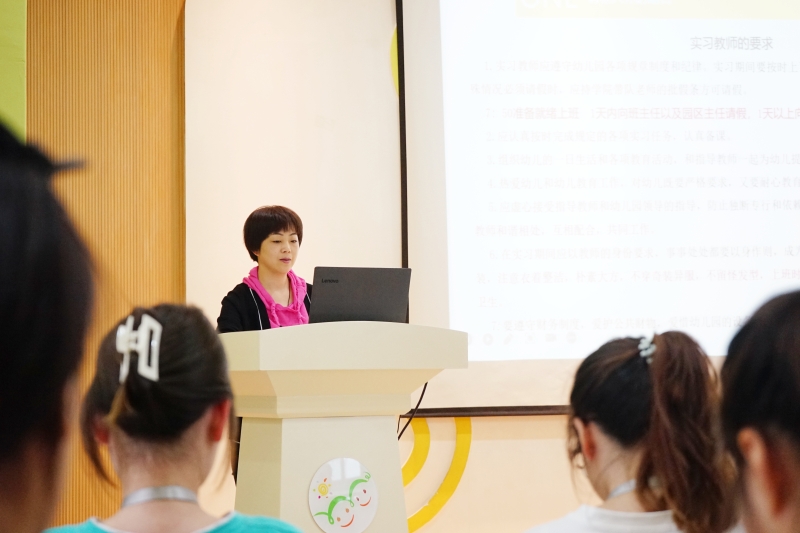 杭州市文华学前教育集团王连园长向实习生们介绍了集团历程以及三个园区的基本情况,并且对共同性课程和个性化课程的特色课程内容做了详细的介绍,让实习生们进一步了解到文华学前教育集团是秉承悦读、悦玩、悦幸福”的办园理念,打造“悦读童年”课程的,使得实习生们对如何促进幼儿身心和谐发展有了认识。
