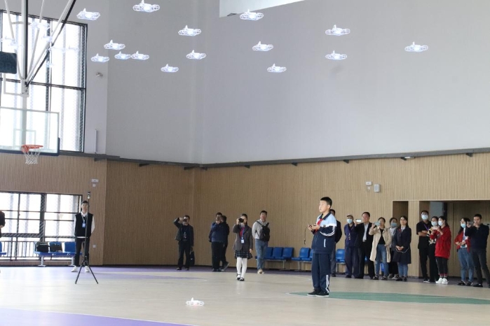 无人机社团的展示也吸引了众多的与会代表。伴随着一曲富有韵律与节奏感的音乐响起,数十架无人机闪烁着光芒,缓缓升空,时而低空盘旋,时而陡然上升,各种形状随音乐的起伏自如切换,为与会代表们上演了一场科技感十足的视觉盛宴。他们纷纷表示,文晖实验的科技展示有亮点、有内涵且形式丰富多元,具有推广价值。