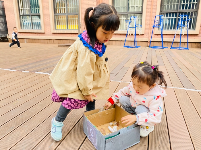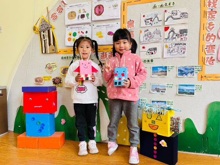 生活中的牛奶杯也绝不能浪费哦!大班的孩子们用巧手将自己喝完的牛奶杯制作成“运动小盒”,用来放置自己的跳绳,品尝完美味的同时,还能为我们的健康再次使用。当然,变废为宝中少不了纸板的创意制作,孩子们将纸板作为画纸与建构材料,让大家的区域游戏增添了别样的趣味。一件件各具特色的创意玩具在幼儿园进行展示并宣传,促使身边的人也有一个环保的意识。