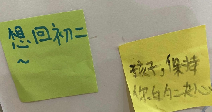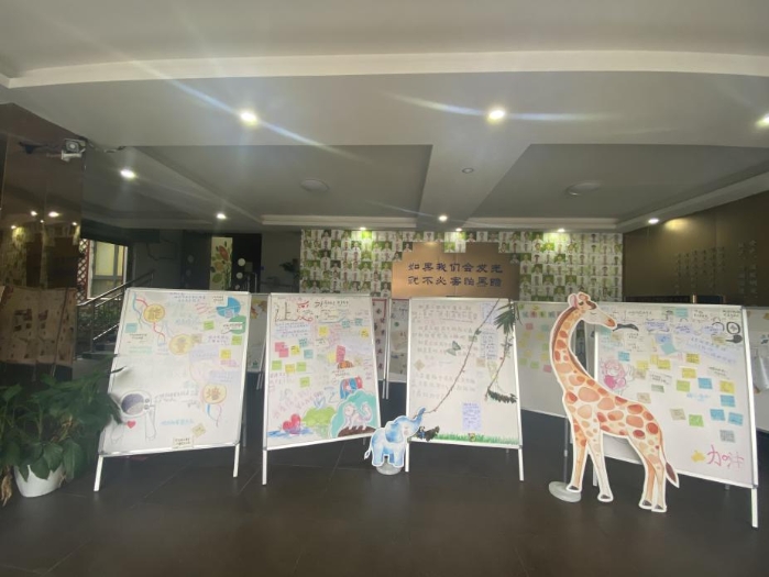 学校的金色大厅展板设计为同学们提供了一个合理宣泄表达的渠道。如“让爱弥漫”展板旨在表达在生活中,总有一些事情在感动着我们,也总有一些人在温暖着我们,此时此刻,同学们可以将这份爱与感动续写、传递;“能量墙”也是希望风雨人生,我们能够随时为自己补充能量;“心晴”意在为学生提供一种绘画方式表达情绪,想我所想,写我所思。