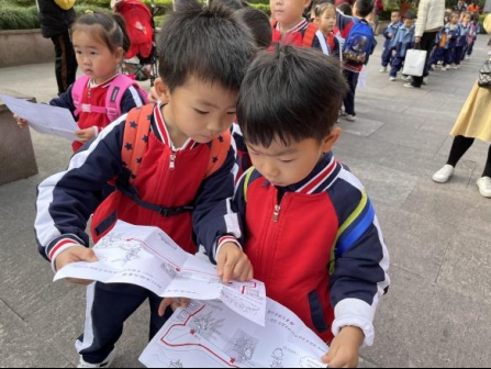 “大运河一共有多长?是谁挖出它的?”面对绵延不绝的大运河,虎山园区大班的孩子们好奇的问道。教师指着徒步道边的运河流经图为孩子们解答后,孩子们不禁感叹古人的智慧。在停停走走间感受大运河的旷阔之美,又在秋日游玩中了解、走进我们璀璨的大运河文化。