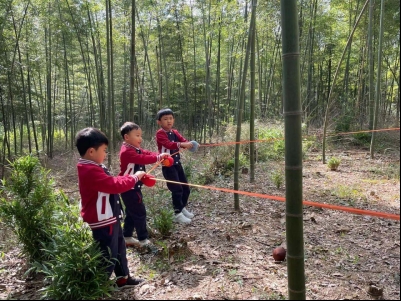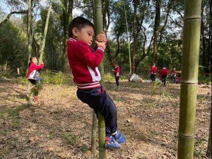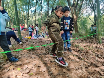在河边,中班的幼儿们在徒步中观察秋季的花、草、树木的,感受他们的变化。到了竹林,孩子们就像是竹林里的小精灵,自由地嬉戏、奔跑,感受秋日带来的不同感受,体验秋游徒步打卡的乐趣。