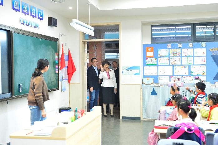 莫教冰鉴负初心,扎紧权力筑本心,清廉教育暖人心。卖鱼桥小学作为杭州市清廉标杆学校,一直走在前、作表率。10月28日下午,省纪委省监委驻省教育厅纪检监察组组长郭丽华,全省各市派驻教育纪检监察组组长,市教育局党委书记、局长沈建平,市纪委常委、市监委委员金伟,市纪委第三监督检查室主任黄胜贤,市纪委市监委驻市教育局纪检监察组组长王秀清,bet188体育官网区人民政府副区长包晓东,bet188体育官网区教育局副书记、副局长丁越,bet188体育官网区纪委监委派驻第六纪检监察组组长叶东华,副组长邵志华等领导参加调研。卖鱼桥小学教育集团党委书记、总校长罗才军,副书记、副校长蒋建国、郭红梅,副校长黄鼎汉、朱俞云、吴丹娜陪同热情接待。