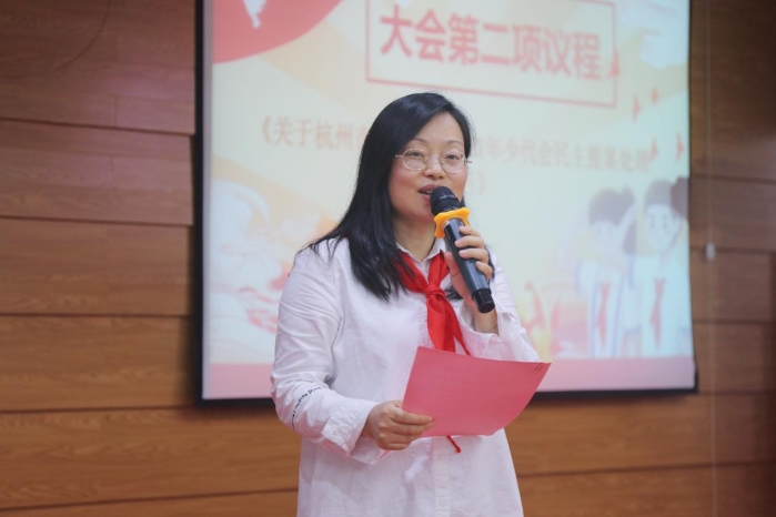 大会第一项任务,杭州市文渊小学大队总辅导员廖雯翔老师与大队委员代表杨思晨作《2021杭州市文渊小学大队委员会工作报告》。她们对过去一年少工委工作进行了回顾,总结了学校这一年来少工委工作开展情况,并对今后的学校少工委工作进行了美好展望。