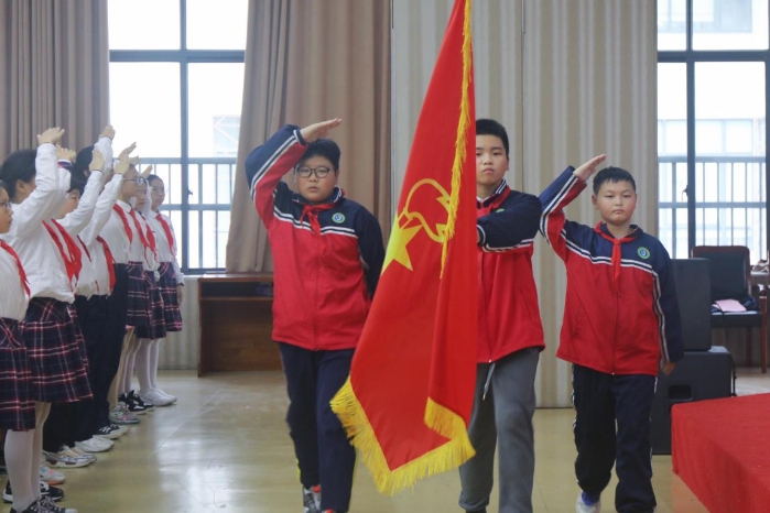 本次大会共有179名少先队员代表,24名大队委员候选人。少先队员代表为与会的老师们佩戴红领巾。“全体立正,出队旗,敬礼!”随着主持人充满激情的口令,全体少先队员面向鲜艳的队旗敬礼。在嘹亮的队歌声中,火红的队旗、鲜艳的红领巾,与庄严肃穆的少先队员们相互映衬,无疑是一幅朝气蓬勃的画面。紧接着,全体少先队员一齐唱响朝气蓬勃、昂扬向上的《中国少年先锋队队歌》。