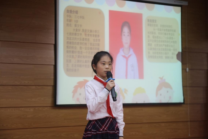 活动中,大队委员代表带来庆祝建党百年献词《请党放心,强国有我》。