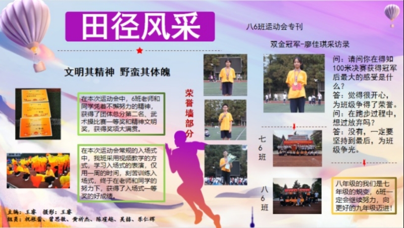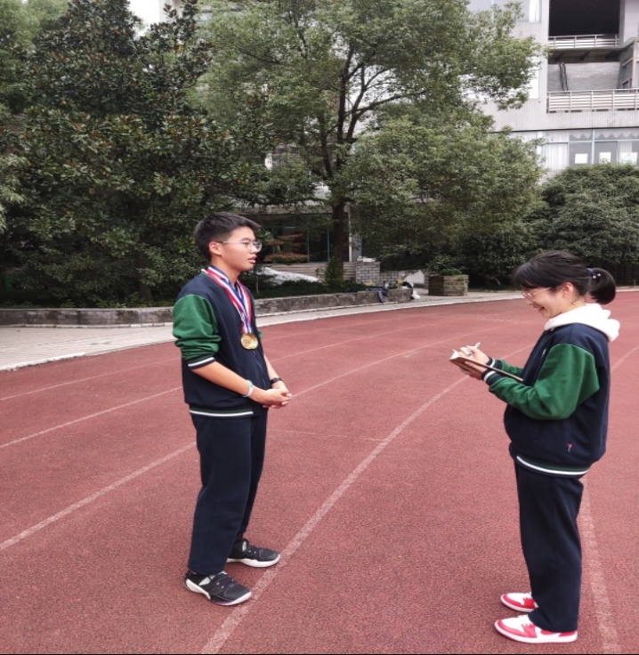 新闻采访是整个新闻综合探究单元中活动性最强、操作难度最大的环节,这意味着学生要从读者的身份转化为新闻从业者的身份。除了要考虑新闻的实效性,还有考虑到新闻的可读性。八年级学生新闻采写热情高涨,在校运会的操场上,随处可见采访的小记者和摄影师。