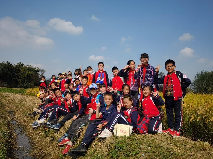 此次研学活动以“探索风的秘密”为主题,随着孩子们的欢笑声,浓浓秋意映入眼帘。他们随着风儿去湖边观察水面上的波纹,去田间看被风吹动的麦浪,去芦苇丛里聆听风儿诉说五千多年良渚古城的历史。瞧,他们用张张彩纸折成一架架纸飞机,在风儿的帮助下飞向天空盘旋、滑翔。孩子们随着纸飞机穿越田野,跑过草地,去角角落落追寻风的足迹。