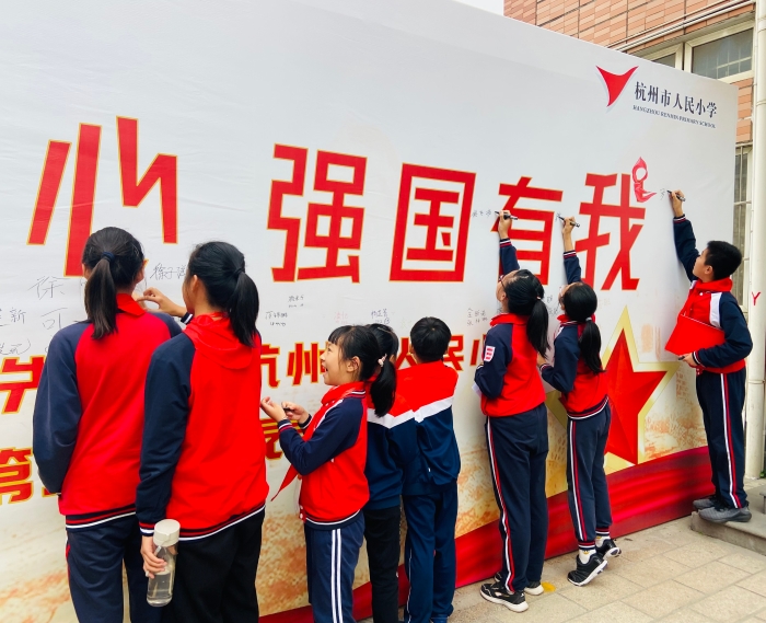 中国少年先锋队杭州市人民小学第三次代表大会,在少先队员签名中顺利落下帷幕。少年智则国智,少年强则国强,少年独立则国独立……相信,这群朝气蓬勃的少先队员们在“阳光雨露”的滋养下定会茁壮成长!