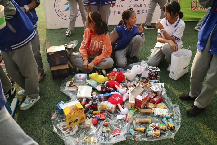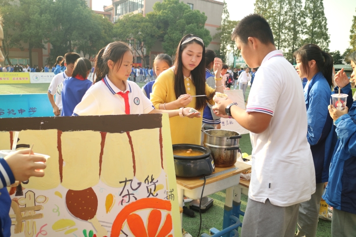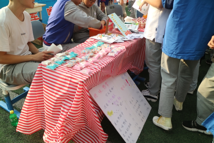 在这阳光明媚的下午,现场氛围霎时变得特别活跃,热火朝天——“来一来看一看,走过路过不要错过”“新鲜出炉的泡面,香飘十里,不买就吃亏”都是同学们销售时的声音,整个义卖市场应接不暇,得到了不少路过的老师、学生、家长的积极响应。