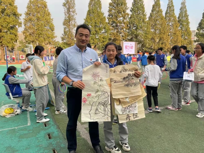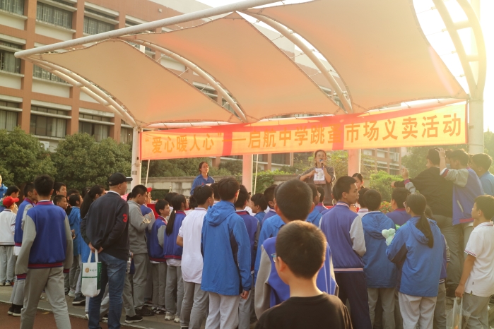 其中,初一1班,初一6班,初一7班,初二4班,初二7班,初二10班被评为最佳摊位设计奖。初一2班,初一6班,初二2班,初二8班,初二9班,初二10班被评为最佳销售奖。此外,还有部分班级进行了艺卖一曲弹唱,引来众人围观和捐款。今年的义卖与往年有所不同的地方,还增加了一场义卖拍卖会,拍卖品都是每班最有价值的闲置物品,拍卖一开始,场面异常火爆,1元、2元、3元……学生们在竞拍中获得自己想要的物品,同时献出了自己的爱心。蒋海明校长也亲自到现场参加活动,购买了学生一副书法作品,除此之外,还购买了别的许多商品;有些老师还带上自己的小孩子去奉献爱心,小孩子也许还不能真正明白其中的意义,但亲身体会爱心的举动无疑给了他最好的爱心教育。