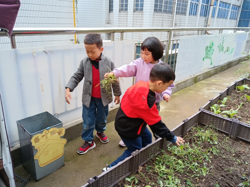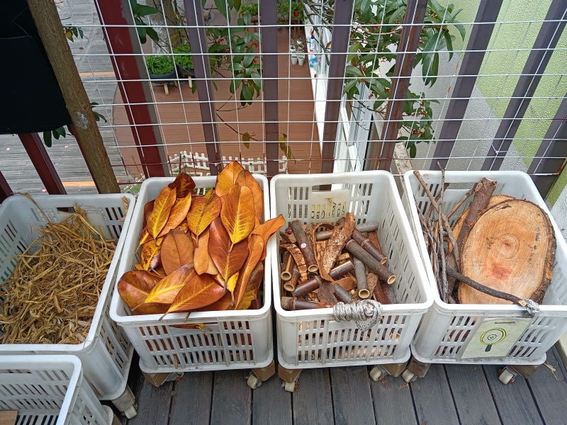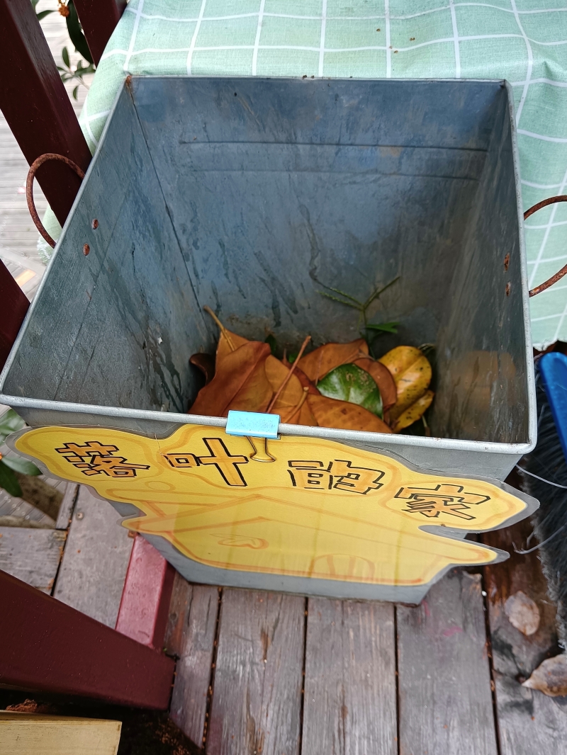 在自然角、种植地设专用园林垃圾桶——“落叶的家”,可随手投放孩子使用后的破损落叶、以及自然角整理出的杂草、开败的花。让园林垃圾不混入其他垃圾桶。