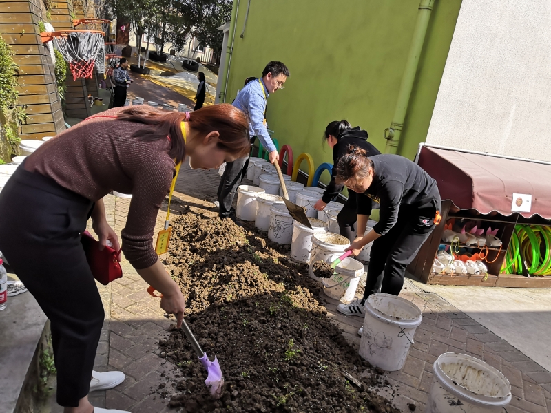 堆肥后的有机土可设置专门的取土区,供日常方便使用。日常的的种植地、自然角各种种植活动、添土环节都可以从堆肥箱里挖取,很好地解决了急需泥土却无处取的困境。