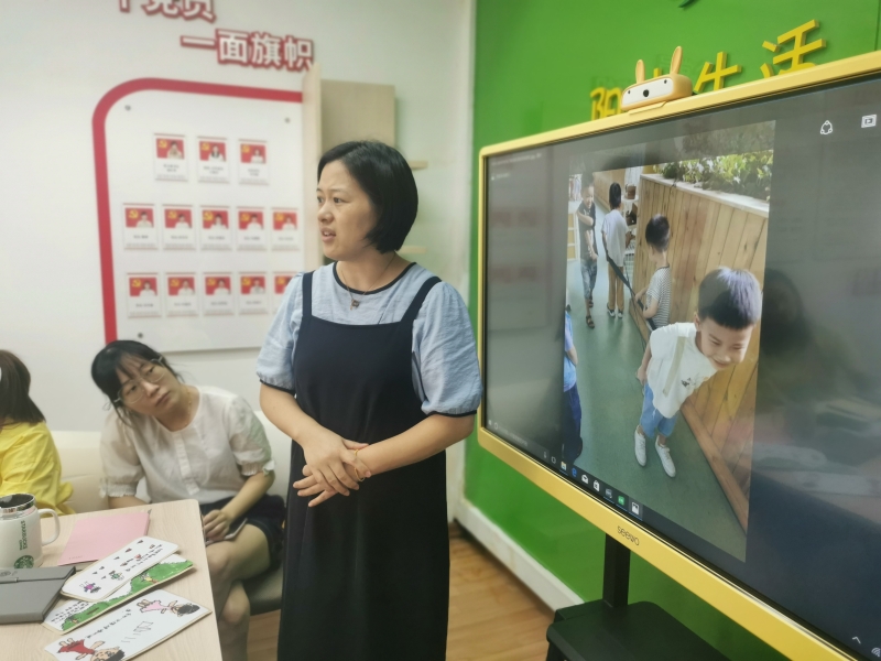 9月24日,中大班老师基于视频分享,反馈了民间游戏的适宜性。中班教师将视线落脚于走廊、楼梯民间游戏馆的内容、材料、玩法的适宜性,而大班教师则尝试将民间游戏课程化,借助项目探究的主题开展形式,通过小组探究、体验,不断调整游戏材料和玩法,提升游戏的层级和水平,让民间游戏真正成为孩子们想要的游戏。最后,全园教师针对各班民间游戏推进过程中存在的问题,进行了一场激烈的头脑风暴。针对游戏的适宜性,以及游戏本身的可变性、可创造性,提出了调整意见或可操作性的解决方法,切实为老师们的课程实施、游戏推进提供了方向。