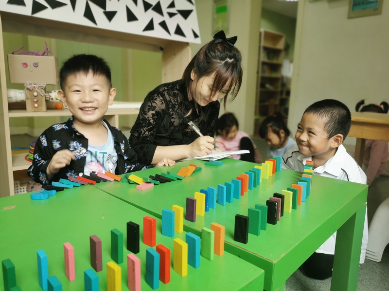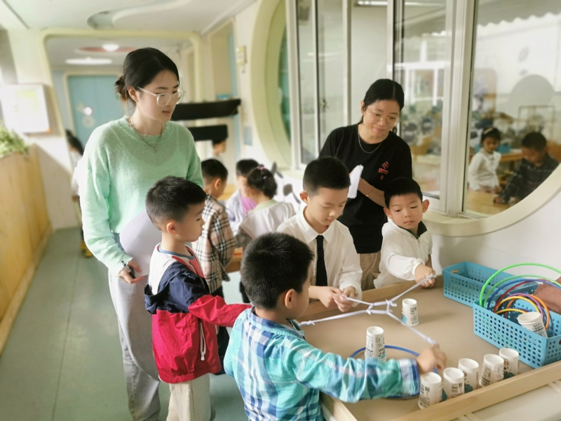 连绵的秋雨,让各个班级的民间游戏转向了室内。10月15日,教师们走进中大班孩子们的民间游戏现场进行观摩,各个民间游戏场馆热闹极了。