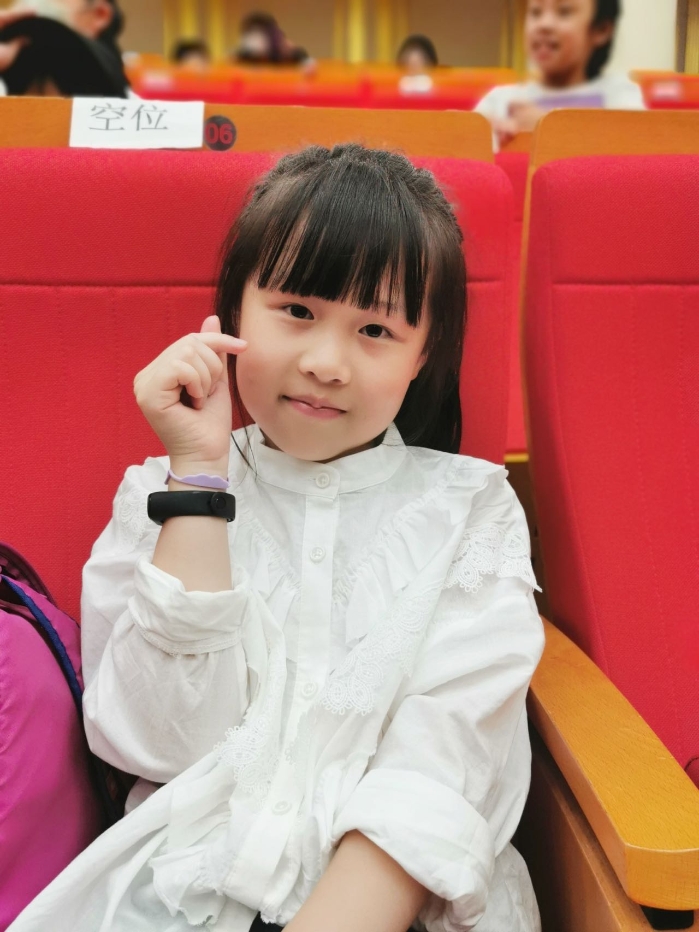 吴婧语:来自四(2)中队,喜欢跳舞、画画、阅读等,积极参加各种公益活动,在老师和家长的教导下,她懂得了怎样感恩、乐观、坚持。只要是她所选择的事情,她所选择的道路,她都会非常坚定地走下去。