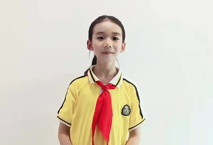 张艺:来自四(4)班中队。性格活波、开朗、乐观、向上,喜欢通过自己的声音传递正能量。曾多次荣获国家级、省级、市级语言类大赛金奖。她始终坚信用善良可以照亮自己的内心,用善行可以照亮他人,用善言传播正能量。